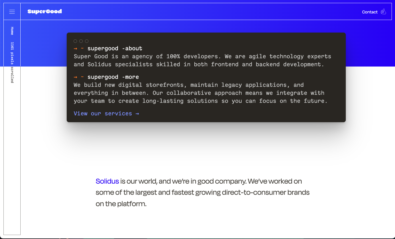 As they looked to position themselves as the go-to dev partner for enterprise ecommerce brands, SuperGood needed a site that balanced professionalism and technical credibility with a sense of warmth, clarity, and approachability.